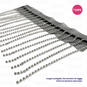 - Eleva tus diseños con un detalle llamativo y sofisticado: este fleco base de mesh en color negro con tiras de piedra es perfecto para crear piezas con textura, brillo y movimiento.