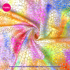 Valorado en 0 de 5$382.80- La licra holograma Stone Path es un textil de alto impacto visual, diseñado para destacar con un efecto iridiscente y multidimensional. Su acabado holográfico refleja la luz en una explosión de colores cambiantes, creando un diseño dinámico y moderno que aporta profundidad y movimiento a cualquier prenda.