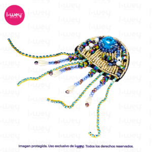 Añade un toque de glamour a tu traje de baño con la aplicación de pedrería “Conchita de Mar”. Inspirada en las conchas del mar, esta pedrería de lujo refleja la luz con cristales brillantes, haciendo que tu bikini o bañador se destaque en cada ola.