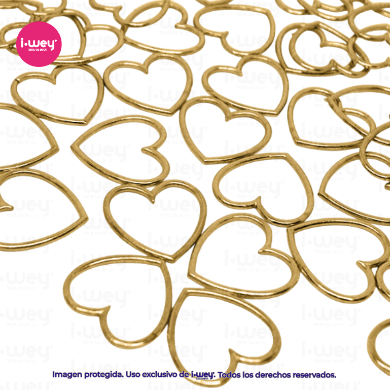 La argolla corazón es un accesorio decorativo y funcional diseñado para aportar un toque femenino, moderno y distintivo a prendas de confección. Su forma en corazón la convierte en un elemento ideal para resaltar diseños de trajes de baño y ropa de playa.