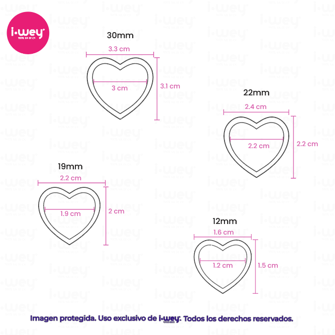 - Variedad de medidas disponibles, según la medida puede variar la forma del corazón.