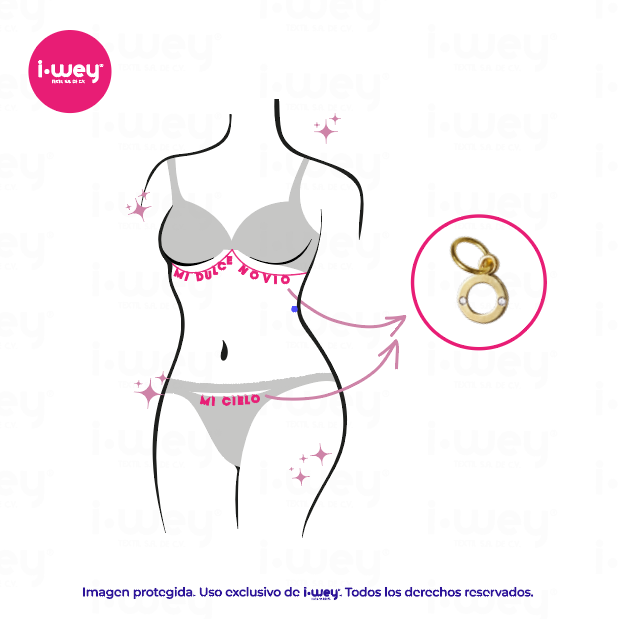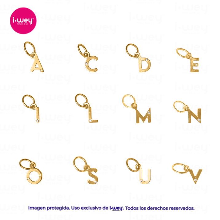 - Dije de Letra Con Diamante en zamac, perfectas para colgar en cadena y añadir un detalle especial a la lencería. Diseñadas para formar palabras o iniciales que aportan un aire sensual, moderno y exclusivo a cada prenda.