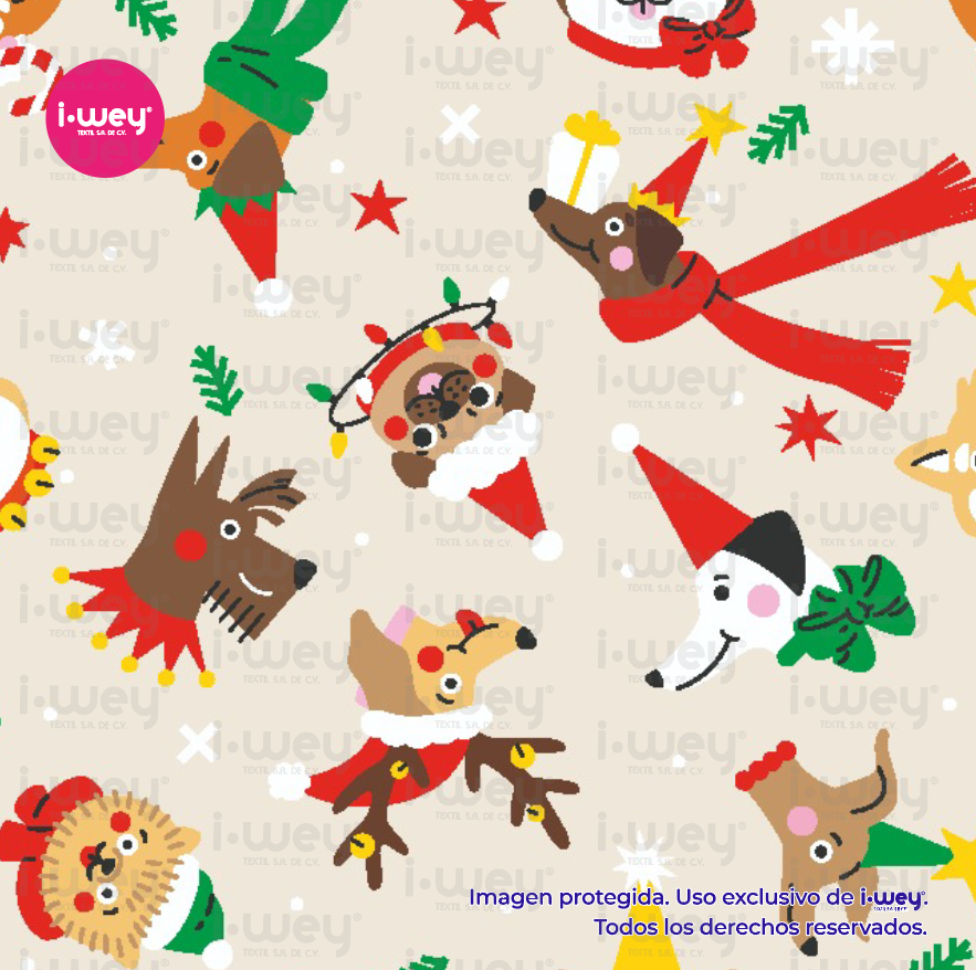 Sumérgete en la magia de las fiestas con este estampado navideño lleno de encanto. Diseñado para resaltar motivos clásicos como copos de nieve, renos a punto de dar un salto, árboles de Navidad delicadamente adornados y estrellas titilantes, todo dispuesto en una composición cálida que respira tradición y tacto hogareño.