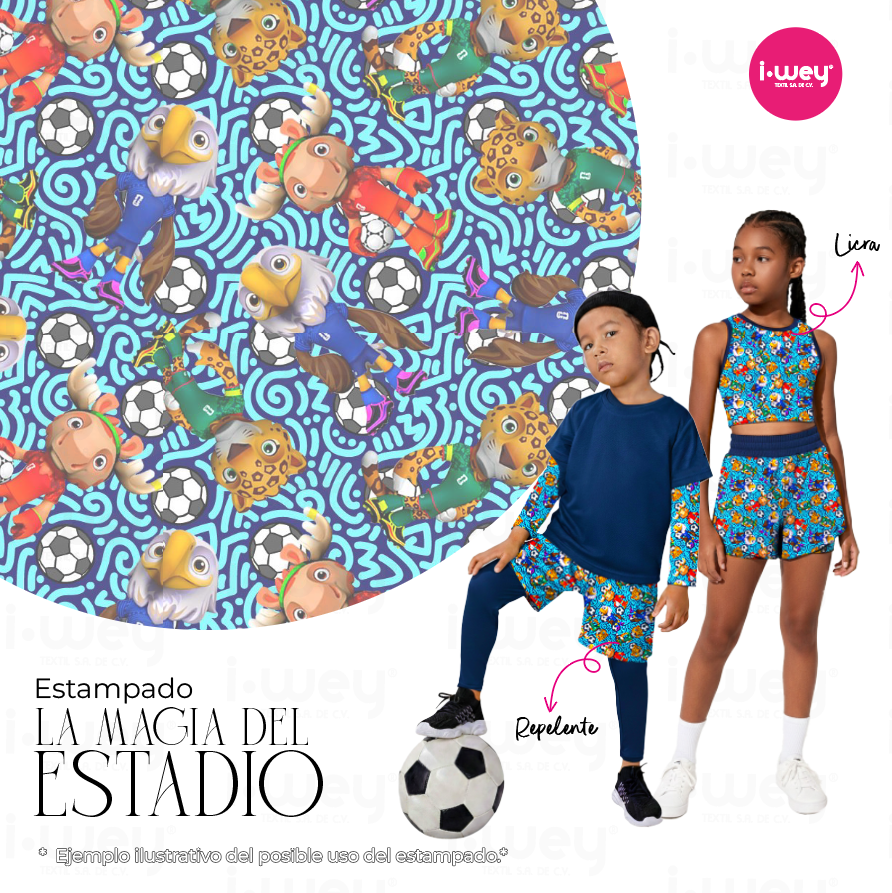 - Estampados disponibles en Licra, Licra Acanalada, Mesh, Licra Kiwilimón, Popelina, Charmeusse, Brush, Gasa, Lingerie, Toalla Ligera de Microfibra, Flannel, Repelente Rígido y Strech.