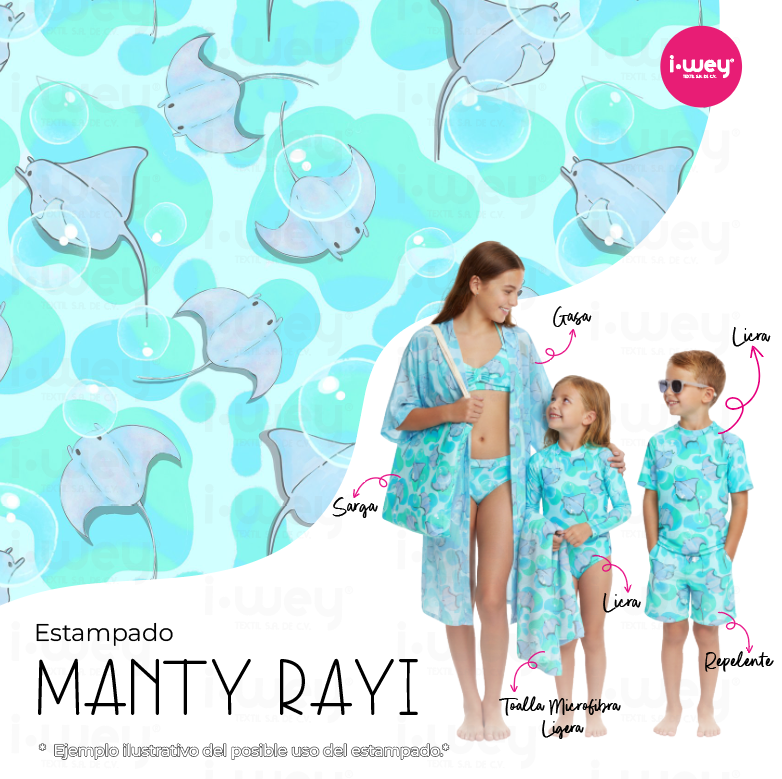 - Estampados disponibles en Licra, Licra Acanalada, Mesh, Licra Kiwilimón, Popelina, Charmeusse, Brush, Gasa, Lingerie, Toalla Ligera de Microfibra, Flannel, Repelente Rígido y Strech.