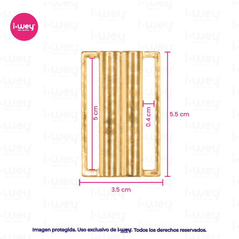 Fabricada con materiales de alta calidad, es resistente a la corrosión, al cloro y al agua salada, manteniendo su color y forma por más tiempo. Su diseño rectangular aporta un toque sofisticado y minimalista, perfecto para bikinis, enterizos y trikinis.