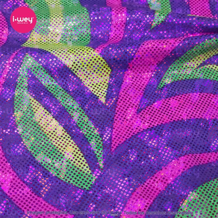 - Descubre la Licra Holograma Circus, el textil perfecto para quienes buscan destacar con un acabado brillante, moderno y lleno de personalidad. Esta licra holográfica refleja la luz creando un efecto multicolor espectacular, ideal para confecciones llamativas y de alto impacto visual