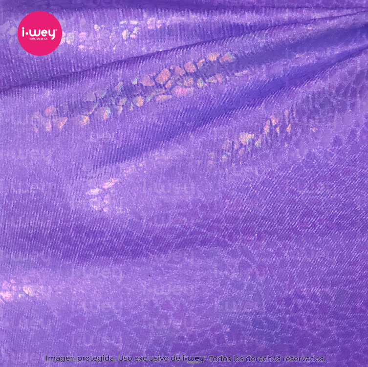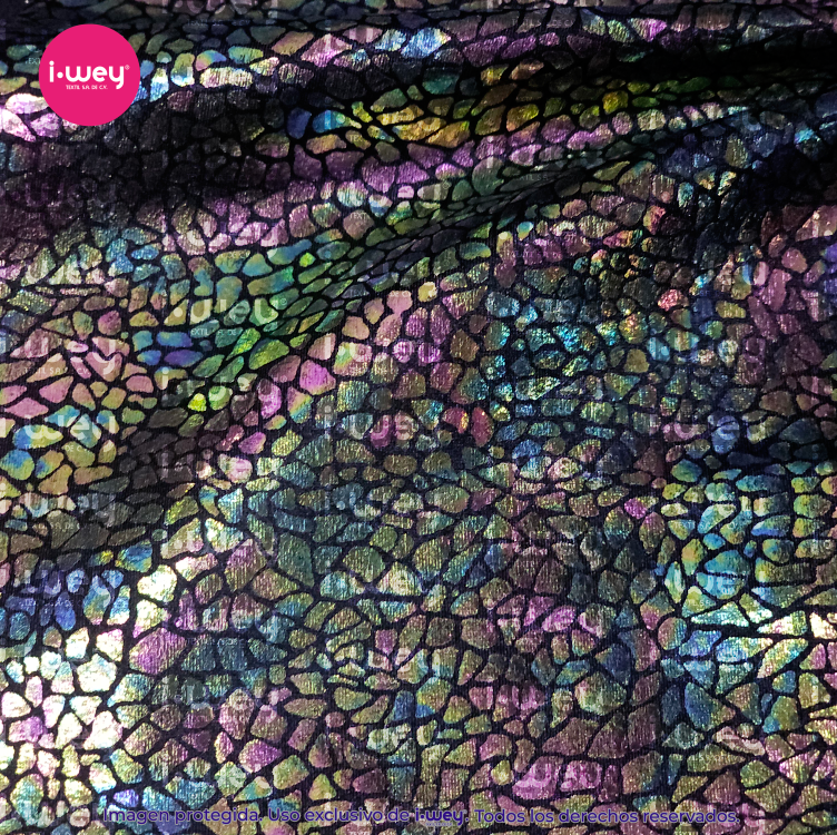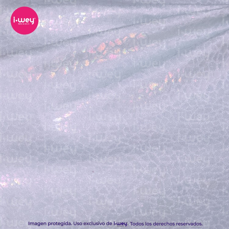 - La Licra Holograma Cristal es un tipo de tejido elástico que se distingue por su acabado brillante y translúcido, similar al efecto de un cristal o una piedra preciosa. Este tipo de licra tiene una textura suave y reflectante que genera un brillo sutil y sofisticado, similar al de un prisma, donde los colores parecen cambiar según la luz que la ilumina, creando un efecto holográfico espectacular.