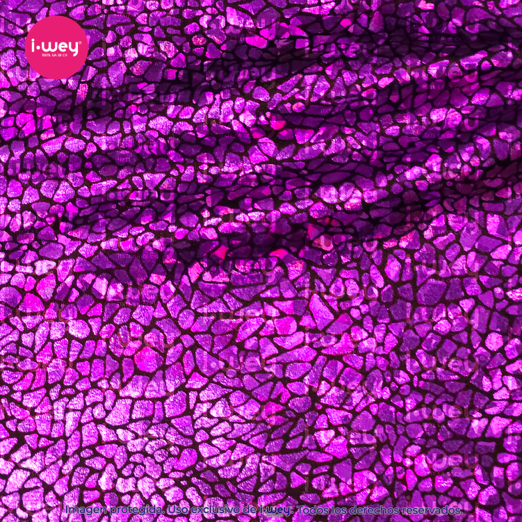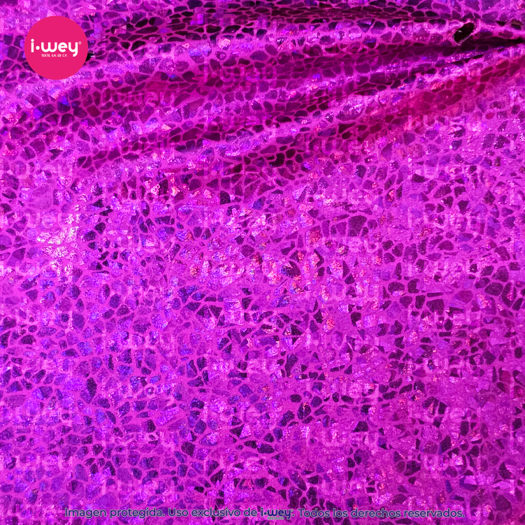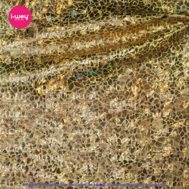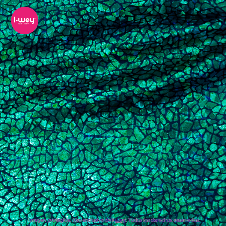 - La Licra Holograma Cristal se distingue por su acabado brillante y translúcido, similar al efecto de un cristal o una piedra preciosa. Este tipo de licra tiene una textura suave y reflectante que genera un brillo sutil y sofisticado, similar al de un prisma, donde los colores parecen cambiar según la luz que la ilumina, creando un efecto holográfico espectacular.