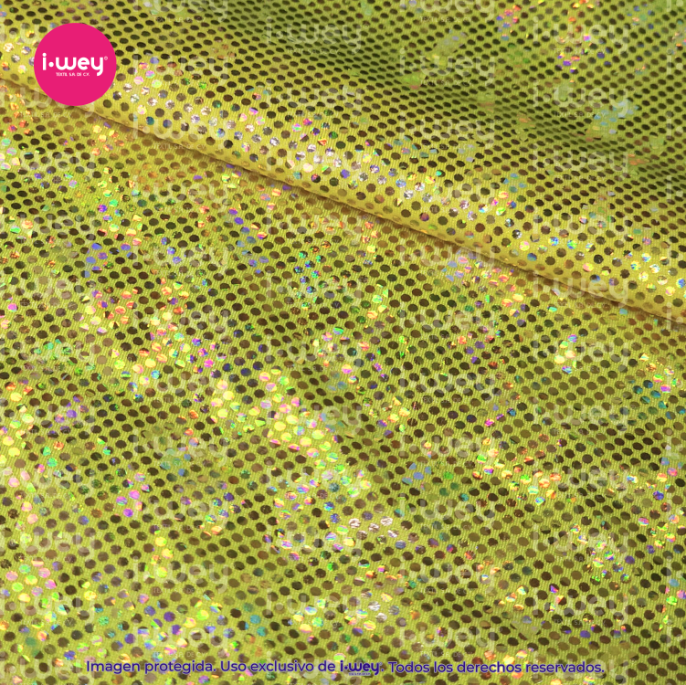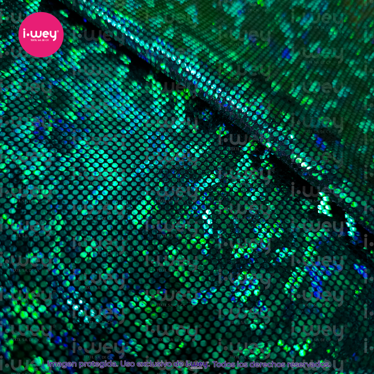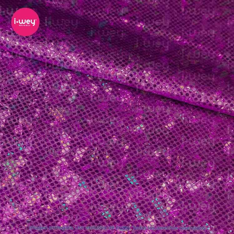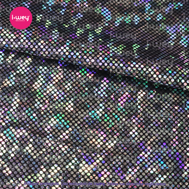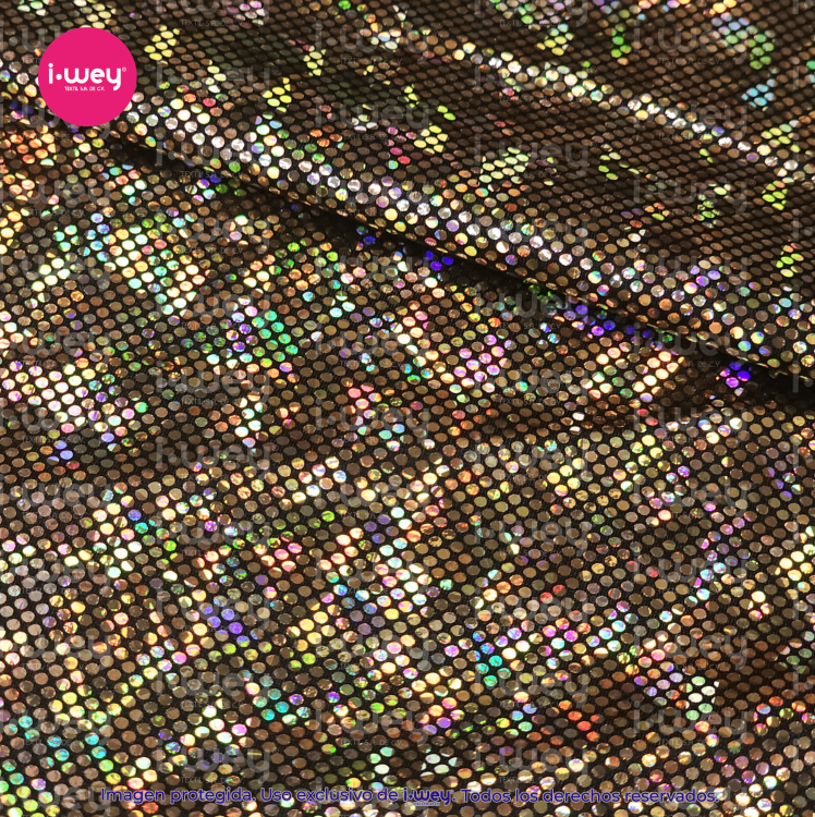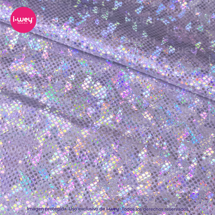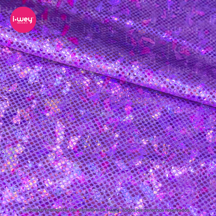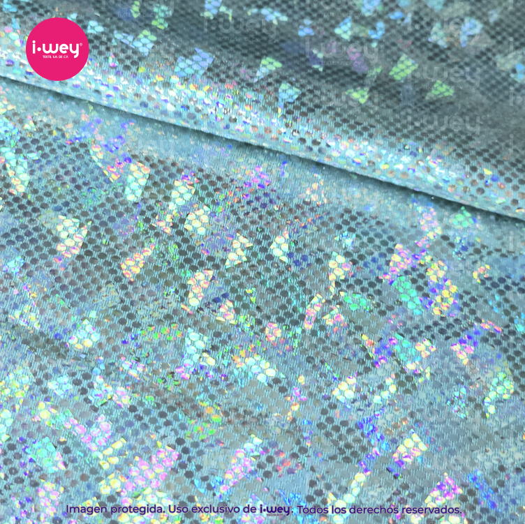 - Efecto holográfico: La licra holográfica tiene una superficie que cambia de color según el ángulo desde el cual se vea, lo que genera un efecto visual llamativo y brillante.