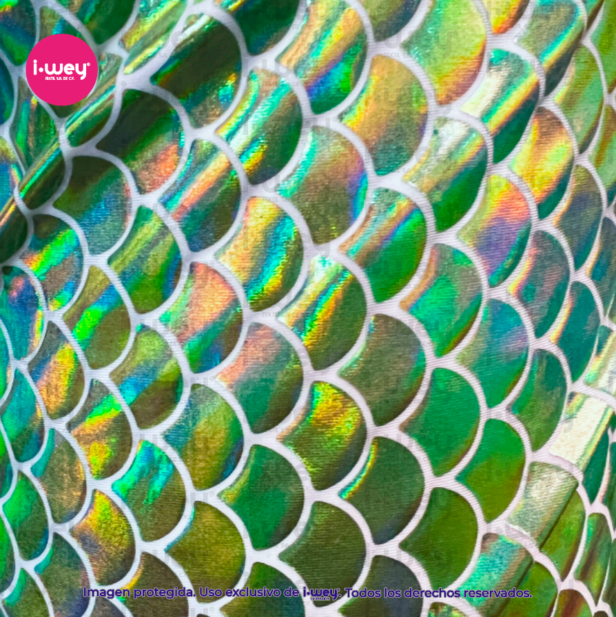 - Dale un acabado impactante a tus proyectos con nuestra licra holograma de escamas grandes tornasol, alta elasticidad que destaca por su brillo multidimensional y efecto iridiscente.