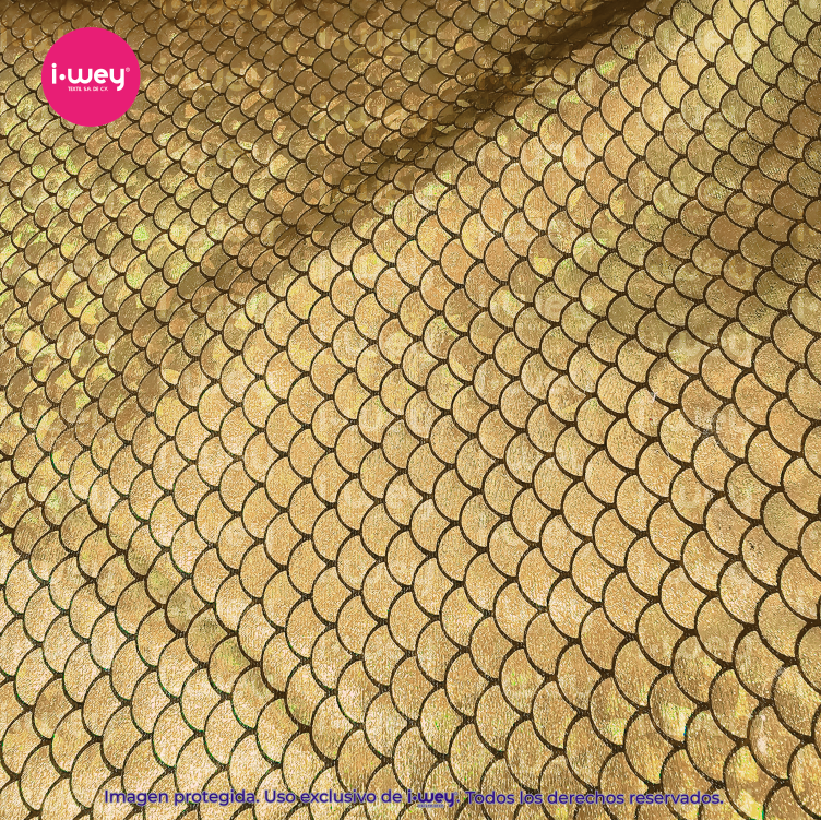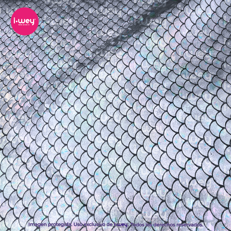 - Brilla con cada movimiento gracias a nuestra licra holograma “Escamas Mini”. Su diseño presenta un patrón de pequeñas escamas con acabado iridiscente que refleja la luz en tonos cambiantes, creando un efecto llamativo y dinámico. Ideal para prendas de alto impacto, vestuarios de danza, trajes para presentaciones o looks que buscan destacar.