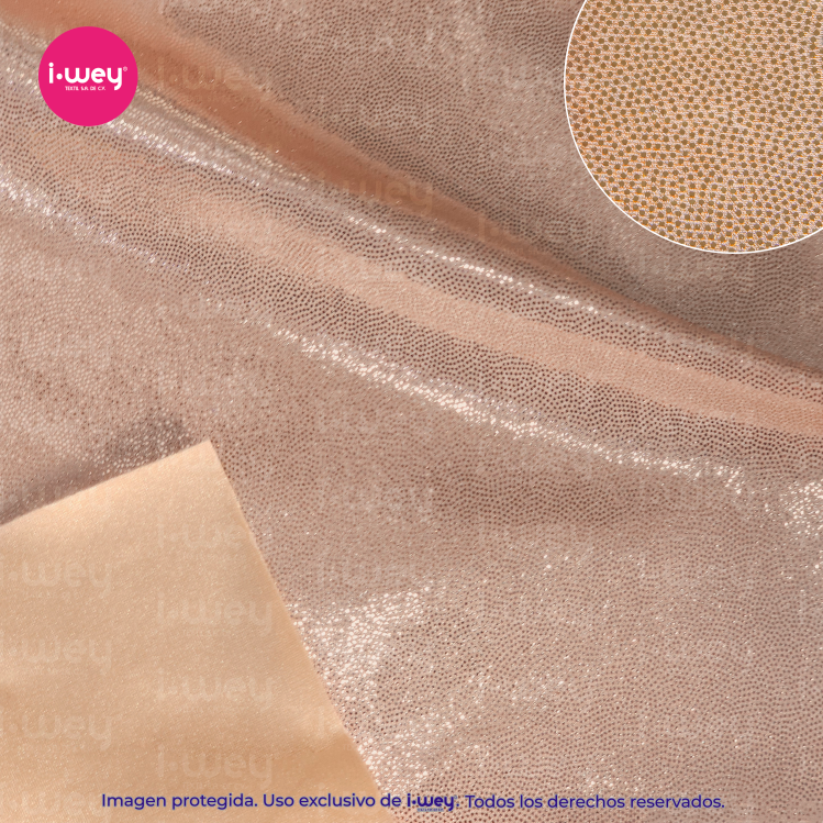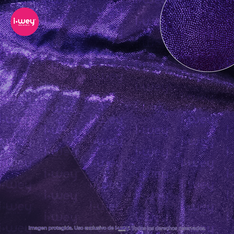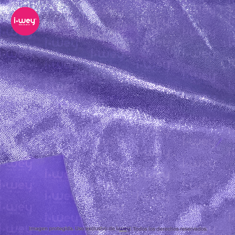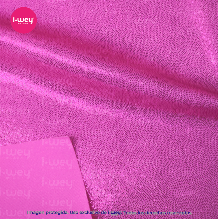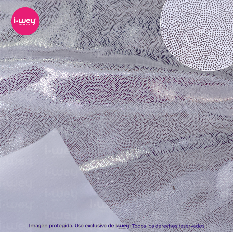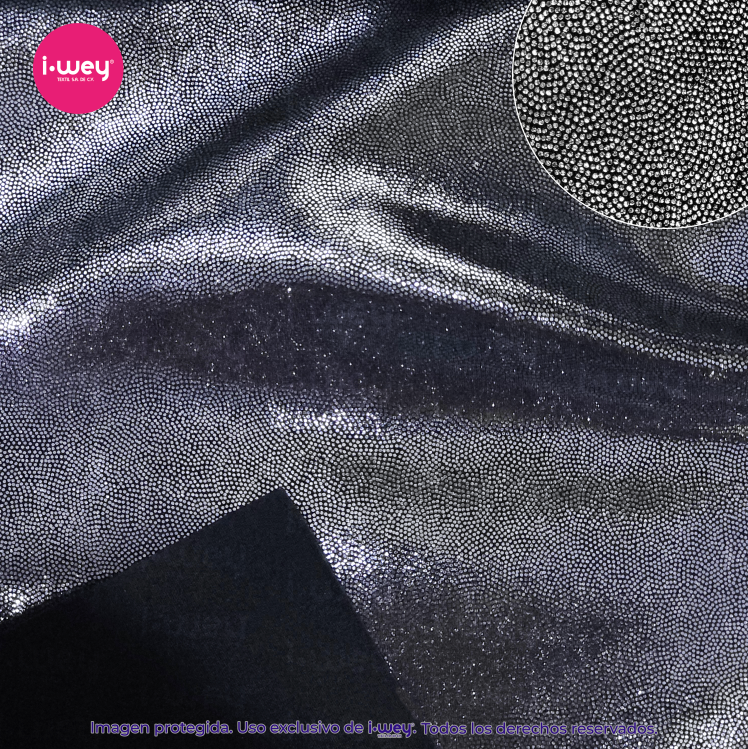 Dale a tus diseños un toque espectacular con la licra holograma puntini, una tela que combina comodidad, elasticidad y un brillo irresistible.