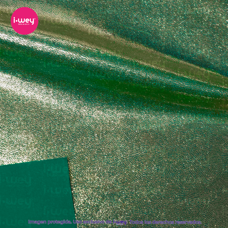 La licra holograma puntini es una tela elástica de alto impacto visual, perfecta para prendas que buscan destacar. Su acabado holográfico con pequeños puntos brillantes crea un efecto luminoso que cambia según la luz y el movimiento, aportando un estilo moderno, llamativo y dinámico.