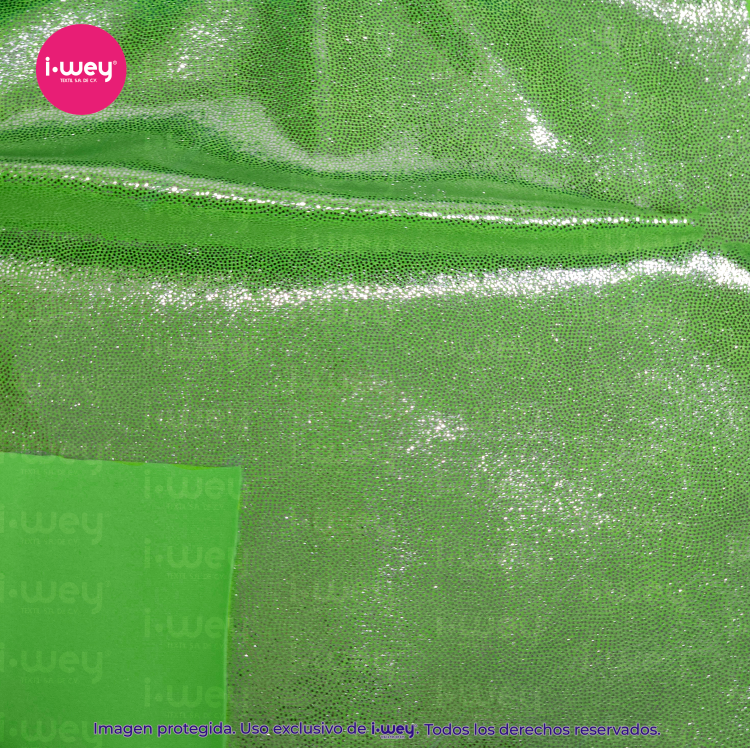 - La licra holograma puntini es una tela elástica de alto impacto visual, perfecta para prendas que buscan destacar. Su acabado holográfico con pequeños puntos brillantes crea un efecto luminoso que cambia según la luz y el movimiento, aportando un estilo moderno, llamativo y dinámico.