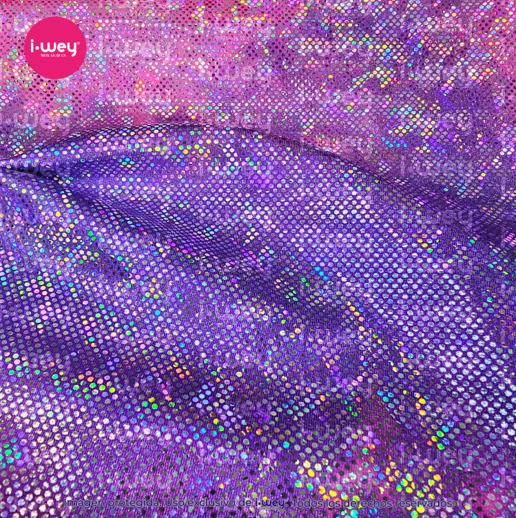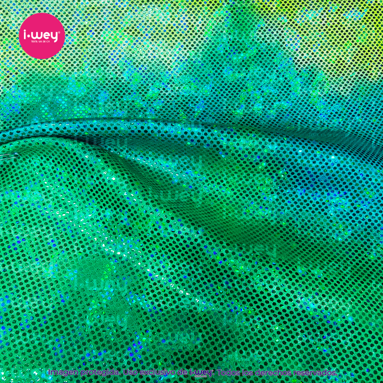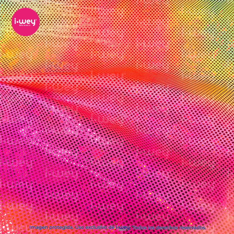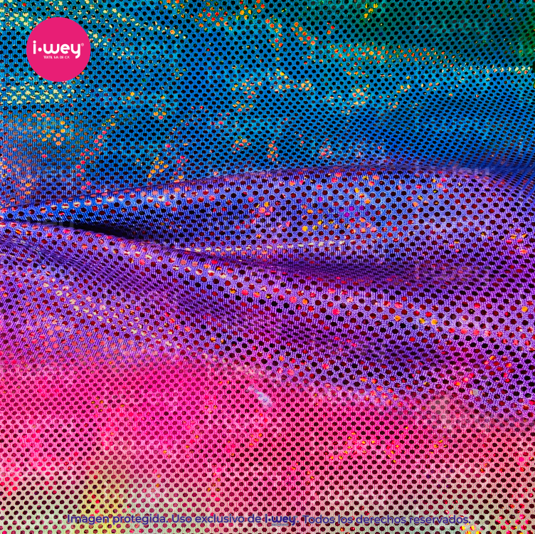 - La licra holograma rainbow tie dye es una tela elástica de alto impacto visual que combina un efecto tornasol holográfico con un vibrante diseño multicolor estilo tie dye. Su acabado brillante refleja la luz creando destellos arcoíris que cambian según el ángulo y el movimiento, ideal para prendas llamativas y modernas.