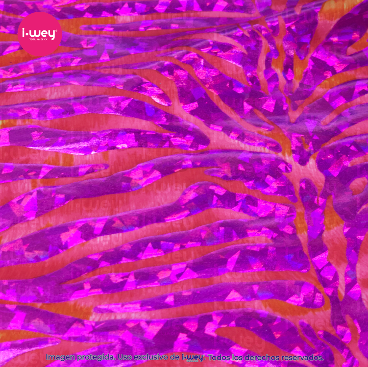 La Licra Holograma Tigre es una tela llamativa que combina la fuerza del estampado animal con un espectacular efecto holográfico. Su diseño inspirado en las rayas del tigre crea reflejos de colores que cambian con la luz y el movimiento, logrando un look moderno, audaz y lleno de energía.