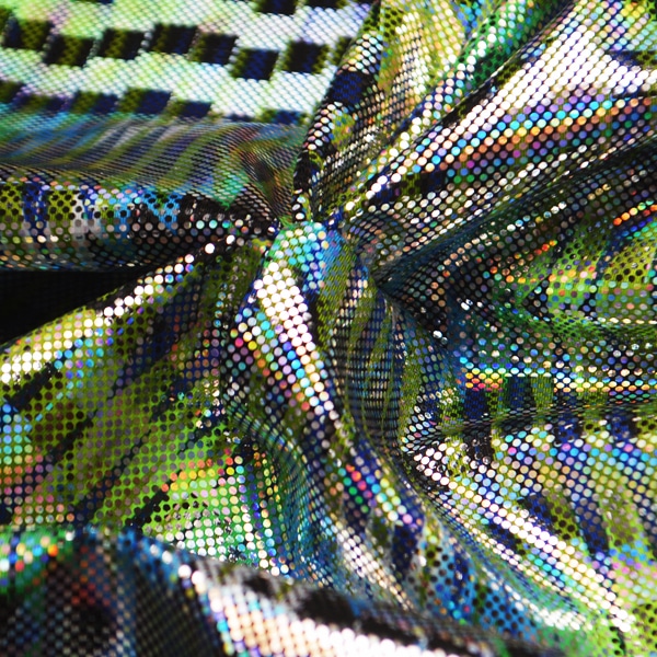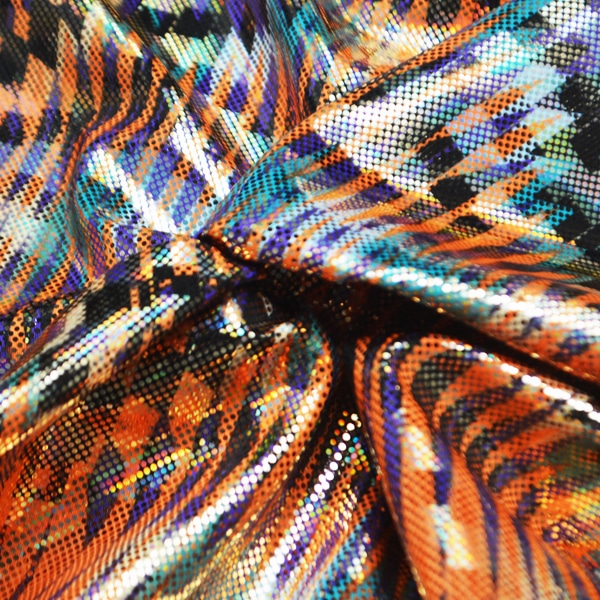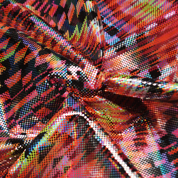 La Licra Holograma Tribal por metro es perfecta para diseñadores y emprendedores que buscan una tela holográfica con patrón tribal elástico, ideal para colecciones atrevidas y prendas de alto impacto visual.