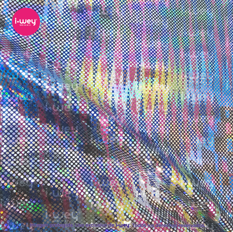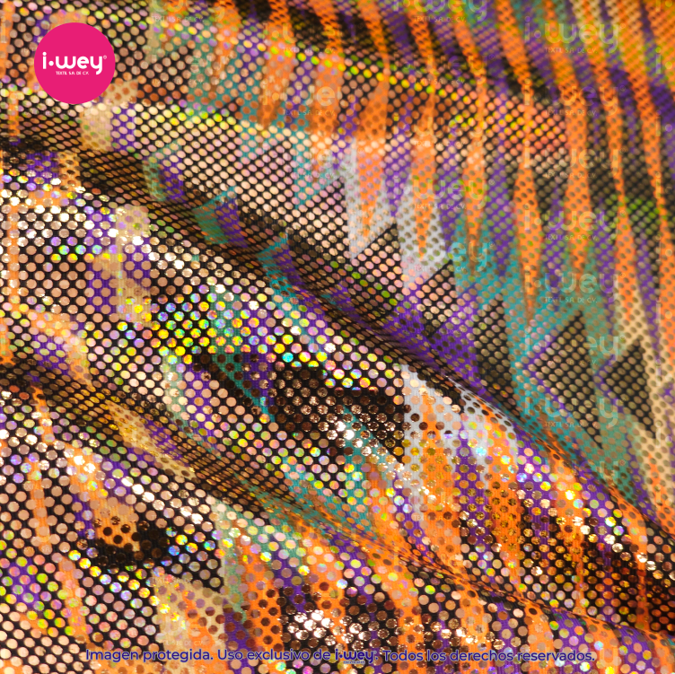 - La Licra Holograma Tribal es una tela elástica con impactante acabado holográfico y diseño tribal de líneas y figuras étnicas que crean un efecto visual dinámico y moderno. Su brillo iridiscente refleja la luz en múltiples tonalidades, resaltando cada detalle del patrón y aportando un estilo audaz y llamativo.