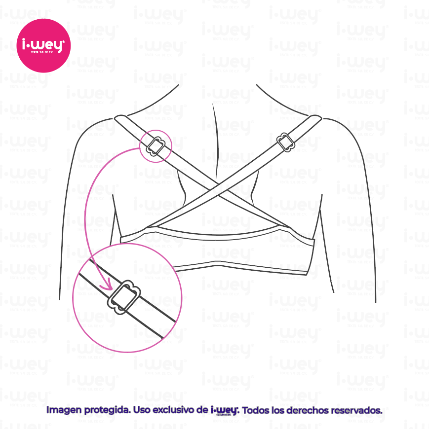 - Los ochos se utilizan para unir los tirantes permitiendo el ajuste de longitud. Varían el ángulo del tirante a la copa del sujetador, da una función ajustable del hombro.