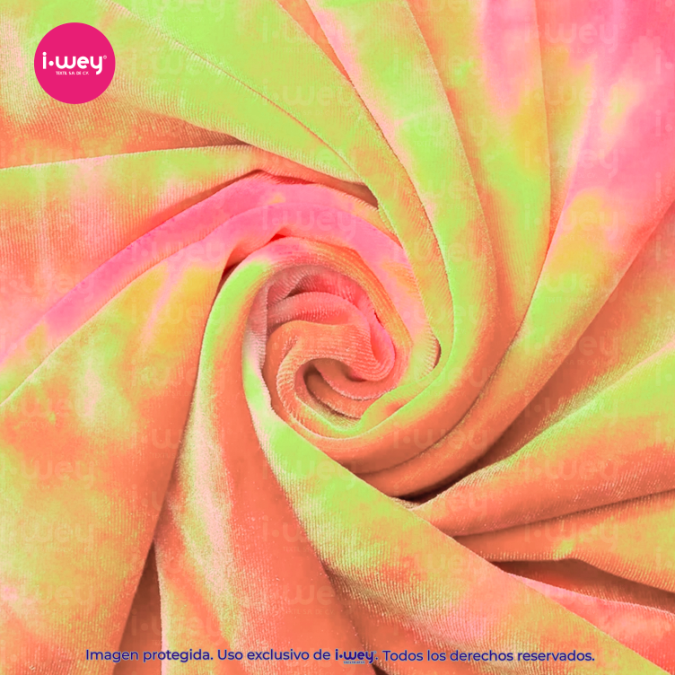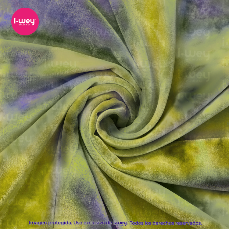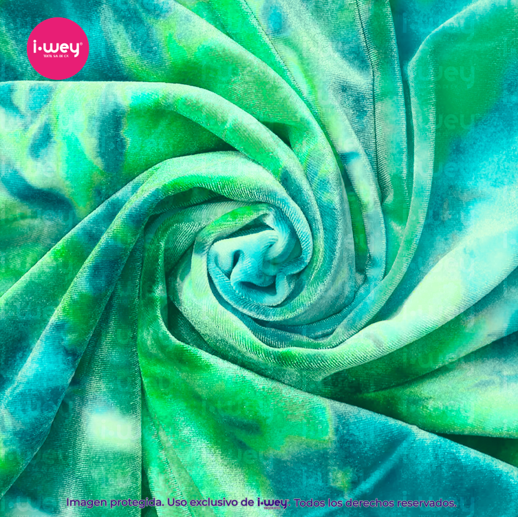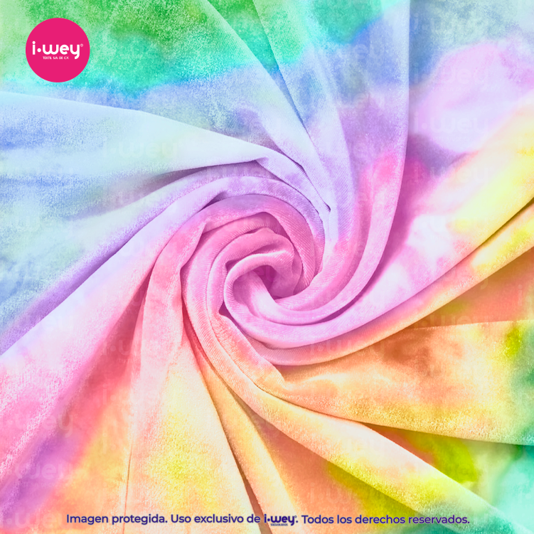 Dale a tus creaciones un acabado suave, vibrante y lleno de estilo con nuestro Terciopelo Tie Dye.